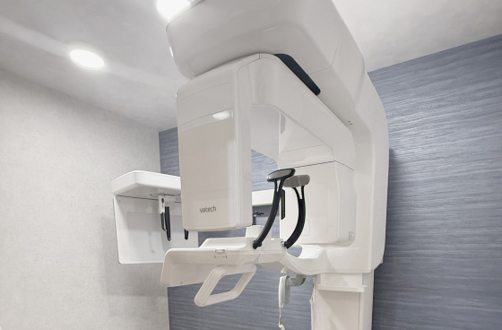 当院はインプラント治療の成功率を向上させるために、歯科用CTを導入しています。CTを使うことで患部を立体的に撮影でき、骨の状態、神経や血管の位置を詳細に把握できるため、インプラント埋入位置の決定や、骨造成が必要かどうかなどの判断が可能になります。