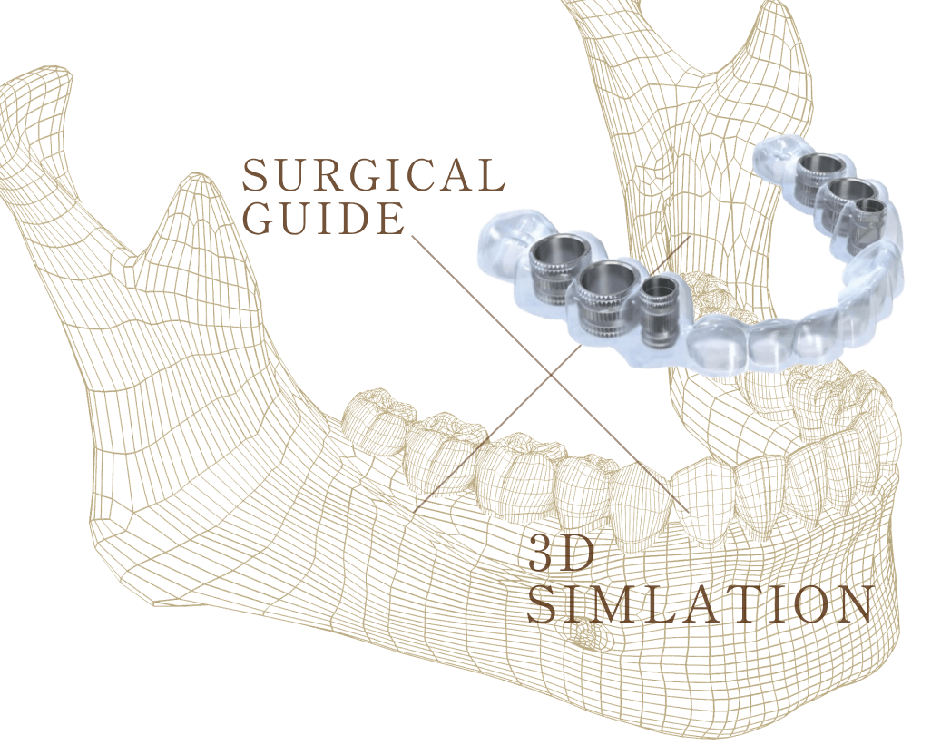 当院は安全なインプラント手術のために「サージカルガイド」を使用しています。これは患者様のお口に合わせて作製されるマウスピース型の装置で、インプラントを埋入する正確な位置・深さ・角度が設定されています。