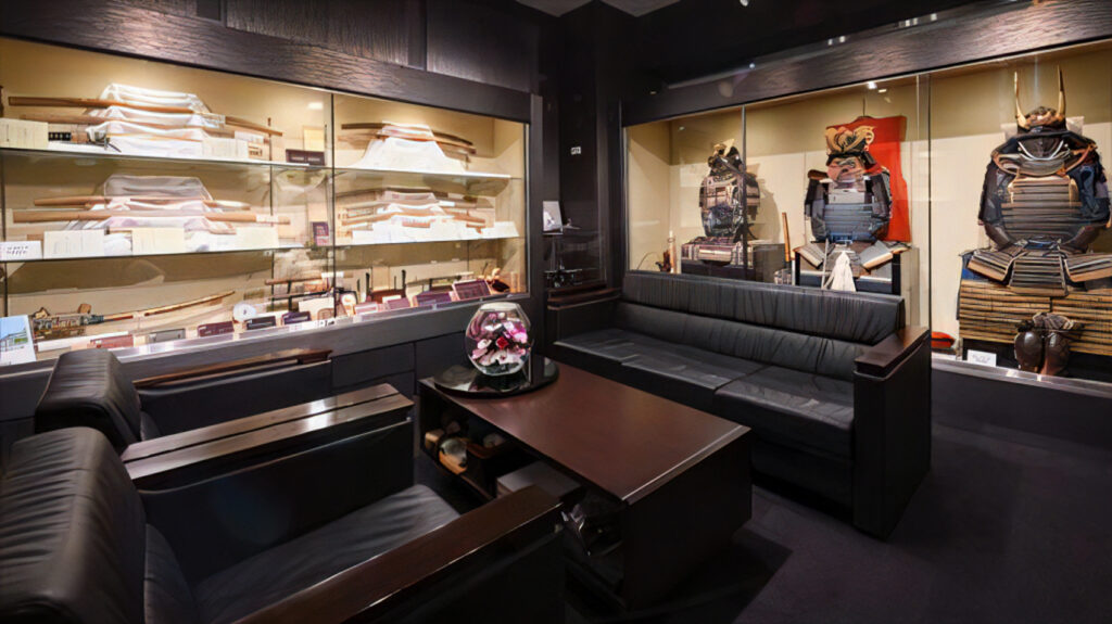 東京 銀座の店舗では、200振を超える日本刀と多数の鍔・小道具に加え、約10領の鎧を展示・販売しております。